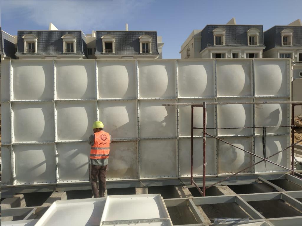 من مميزاته ايضا الخزان التجميعي ( المربع – الرأسي ) الذي يتم تصنيع وحداته بالمصنع وتجميعه بالموقع